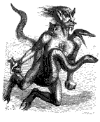 The Twenty-third Spirit is Aim. He is a Great Strong Duke. He appears in the form of a very handsome Man in body, but with three Heads; the first, like a Serpent, the second like a Man having two Stars on his Forehead, the third like a Calf. He rideth on a Viper, carrying a Firebrand in his Hand, wherewith he setteth cities, castles, and great Places, on fire.[1]. He also governs 26 Legions of Inferior Spirits. Some say he is also the same as Raum.