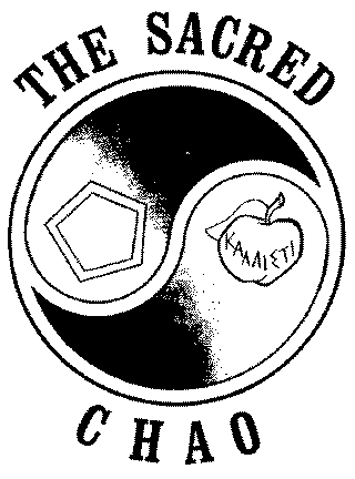 The Sacred Chao is the sacred symbol of the Erisian Movement, consisting in the yin-yang balance of the Pentagon (representing Order) and the Golden Apple of Discord (representing Chaos). It can be found on most covers of the Principia Discordia.